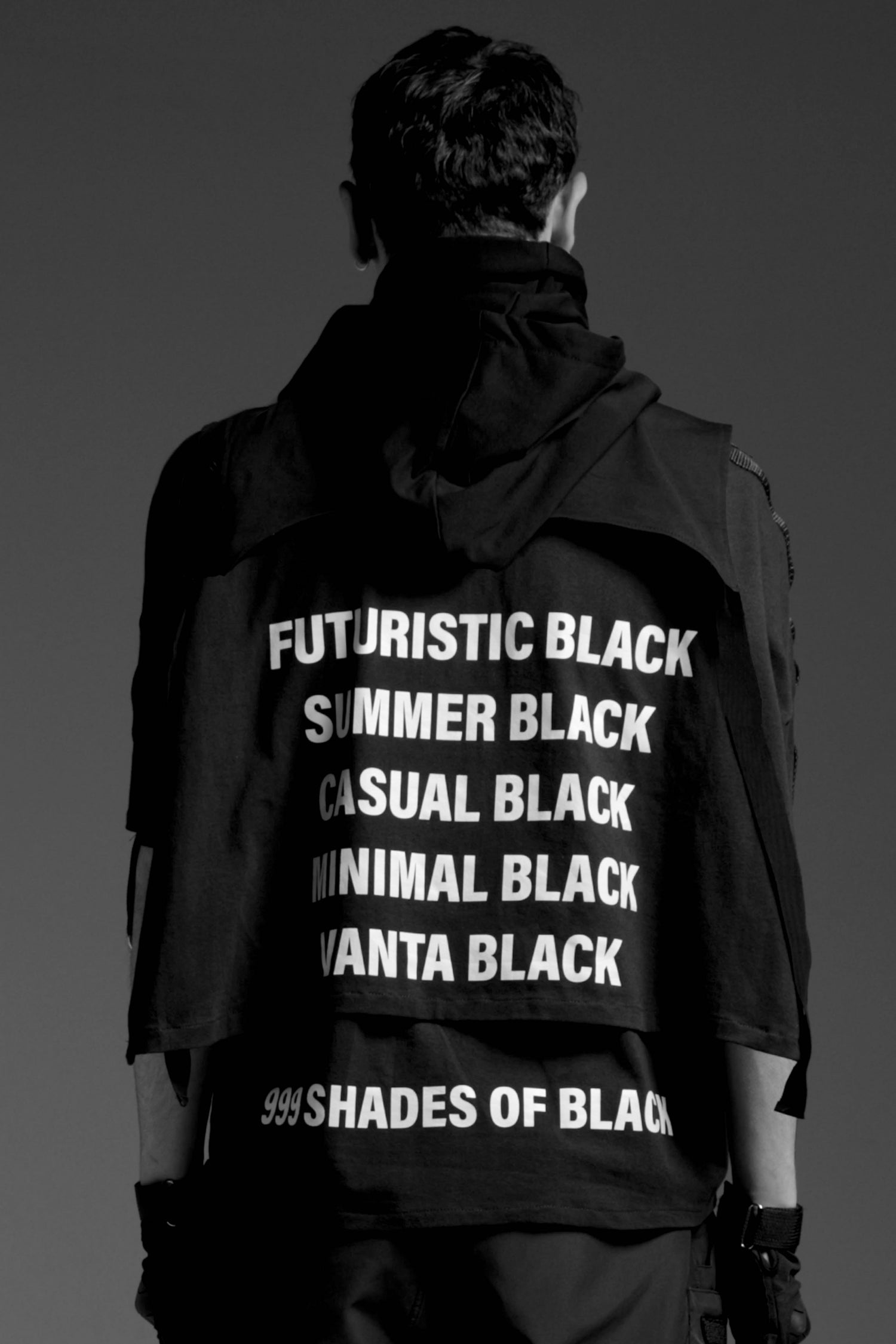 Black and white represent duality and help keep the mind in a state of peace. As a brand, we advocate against overstimulation through colorful dopamine fashion; instead, we embrace the mental states of calm that allow us to create mental sanctuaries through the 999 shades of black.