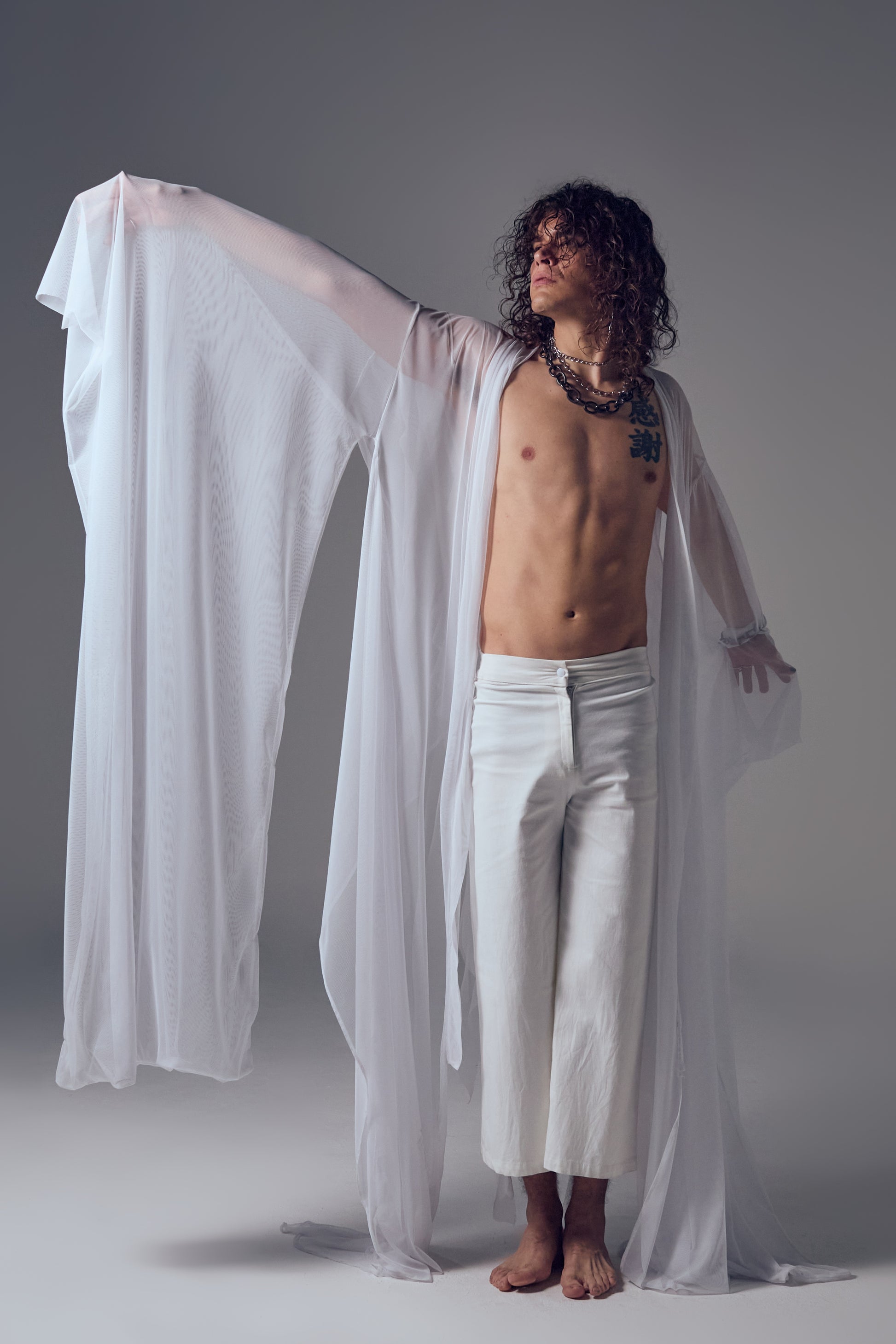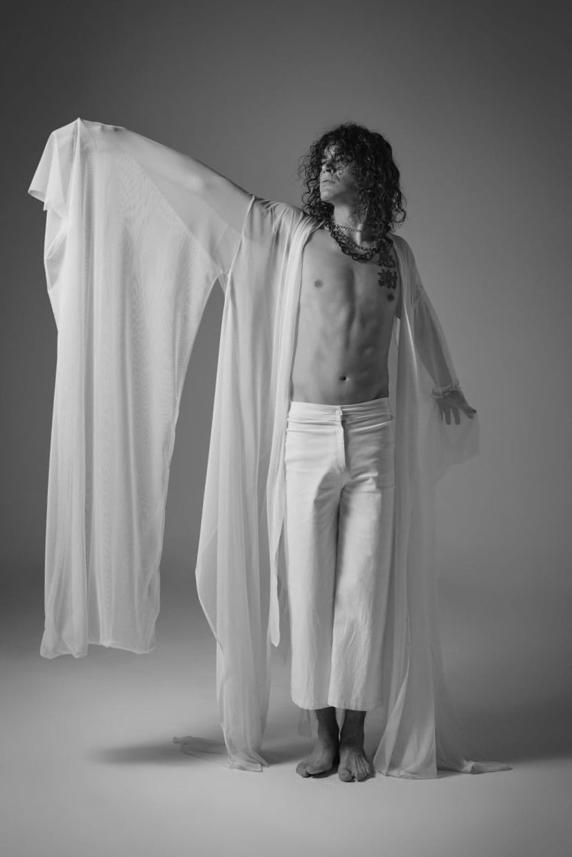 This long kimono, blended with elements of a hanfu, is a fresh and airy piece that evokes inner peace. A truly unique garment for those seeking something different beyond the simplicity of white.