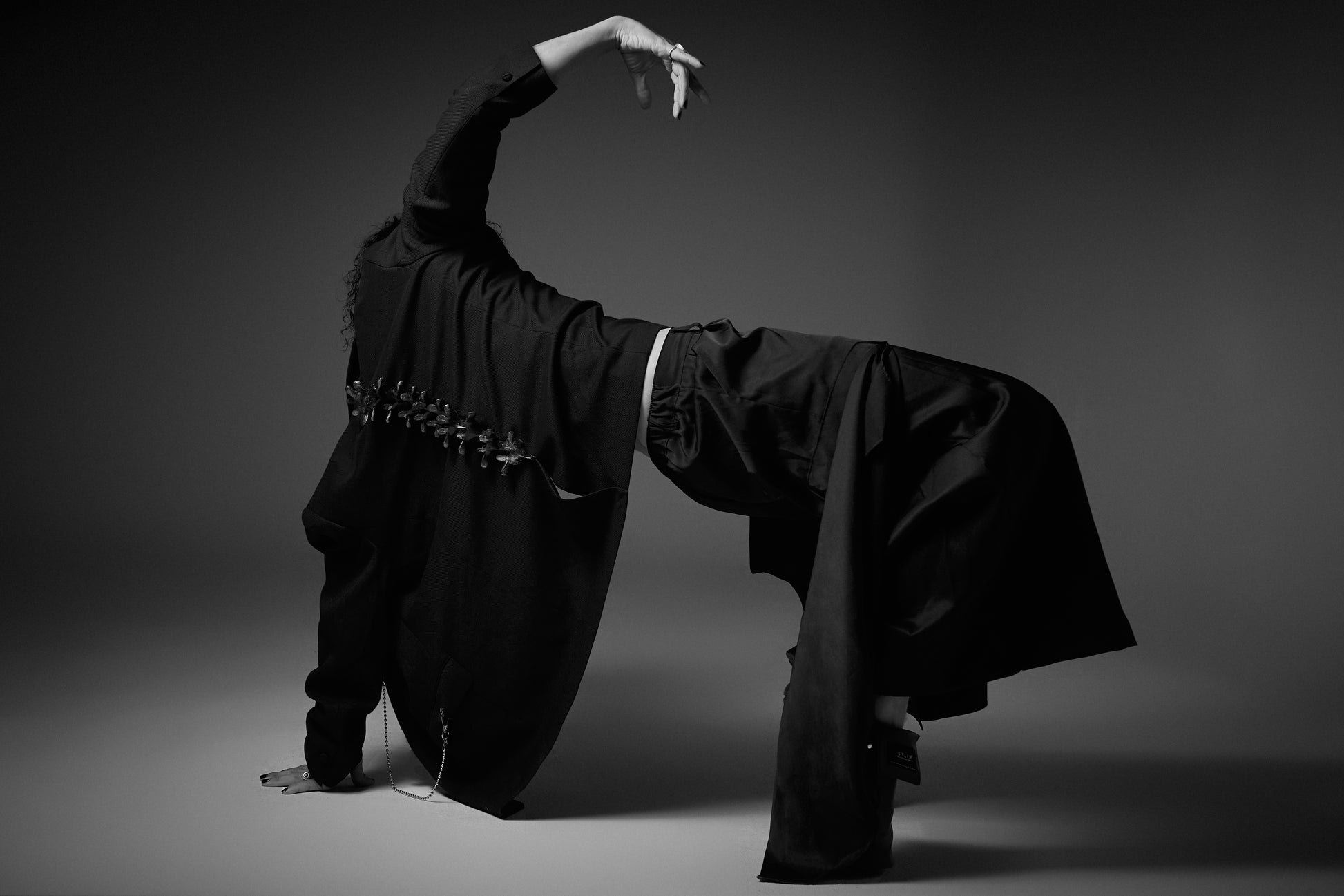 Crafted from repurposed materials, this blazer features a minimal front chain and a striking 3D-printed vertebrae detail on the back. Made from PLA with a chromed finish, the sculptural spine adds strength and presence to an otherwise simple silhouette.